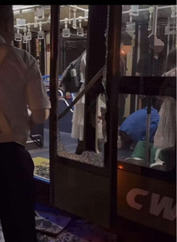 22时04分许,3号车厢一名男性旅客擅自取下消防安全锤试图砸车窗,列车工作人员上前劝阻未果,导致一块车窗玻璃被砸破。为防止旅客跳窗发生意外,一名列车工作人员立即上前张开双臂、拦在窗前,乘警及其他列车工作人员共同做好现场隔离防护。